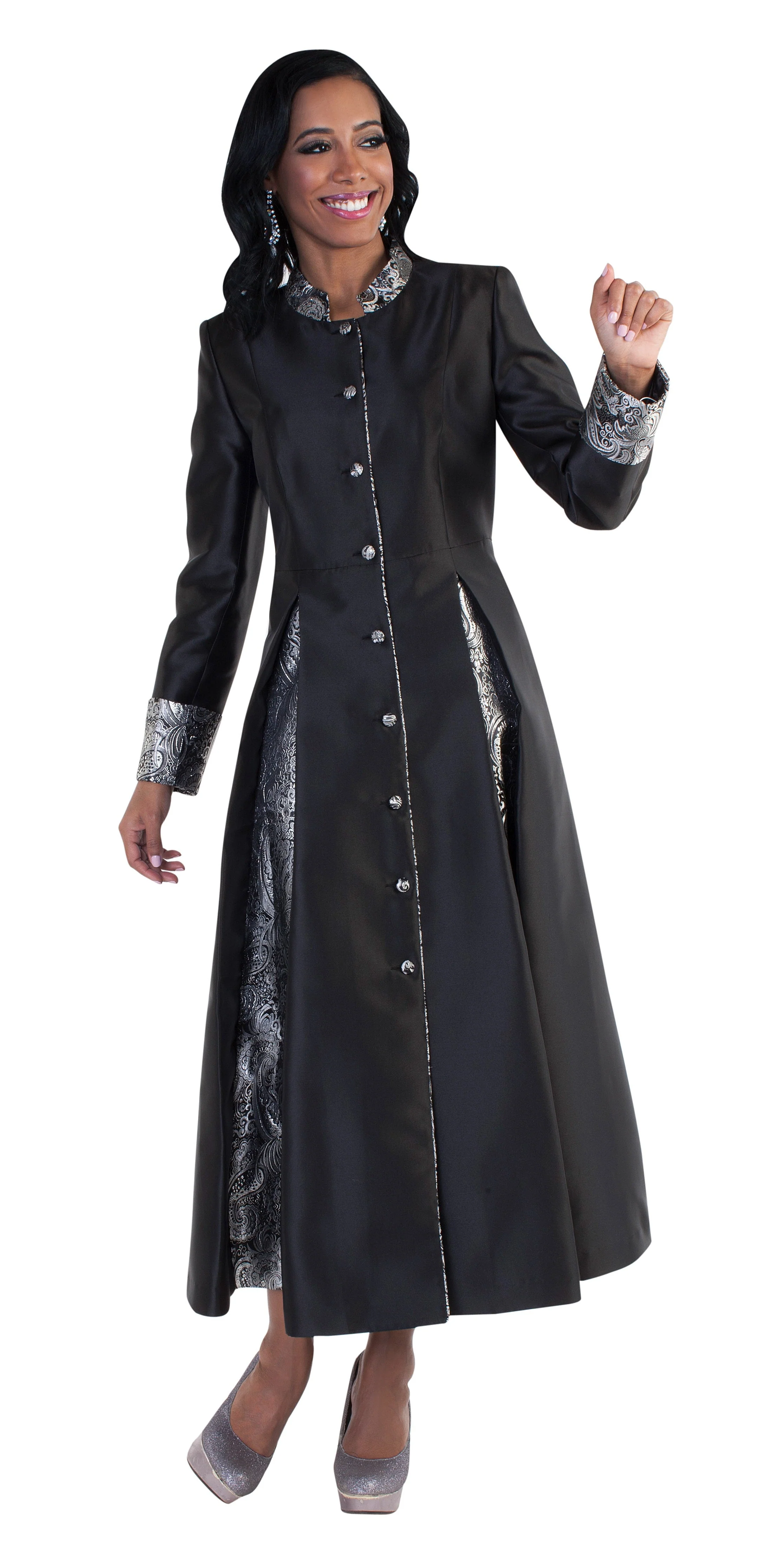 Embrace grace and sophistication with this Elegant 1-Piece Women's Minister Robe, thoughtfully designed for the modern church leader. Crafted from luxurious two-toned silk-like fabric, this robe showcases exquisite pleated detailing and a stunning rhinestone button front for a polished, refined look. The tailored cuffs add an extra touch of elegance, making it the perfect choice for Sunday services, special ceremonies, or any church event. Available in multiple colors to complement your personal