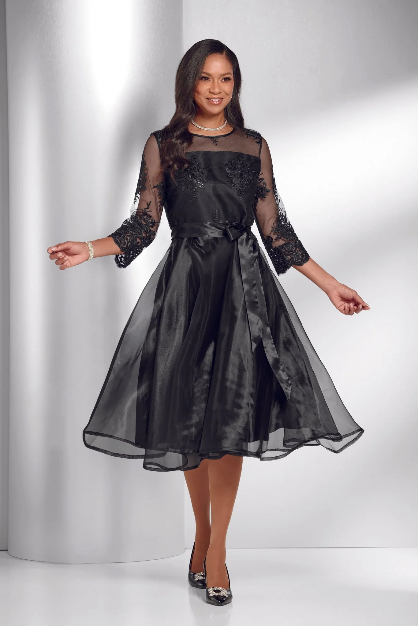 45" from center back neck.Self-sash, 3/4 sleeves. 100% polyester. Dry clean. Imported.