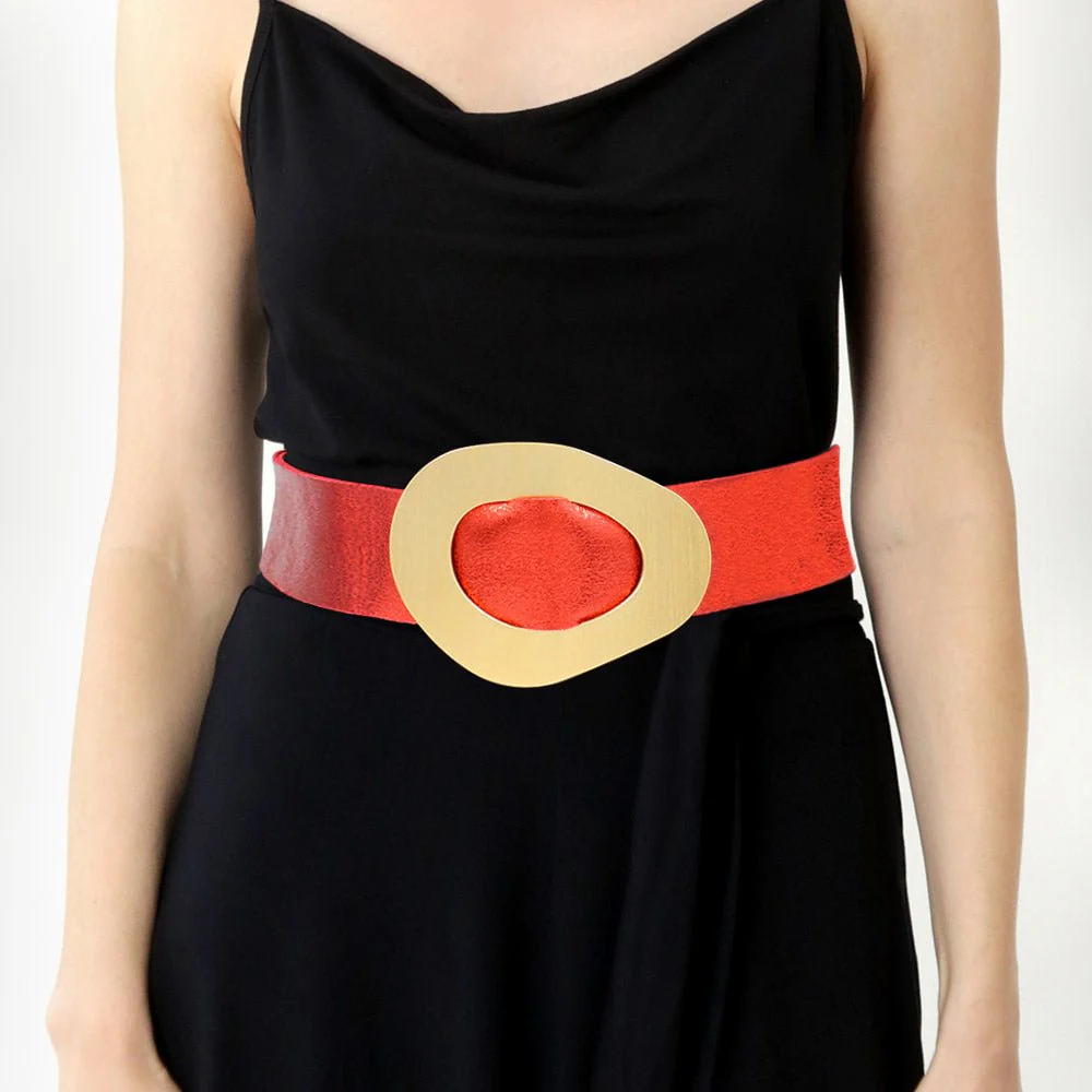 Geometric Brushed Metal Buckle Faux Leather Belt